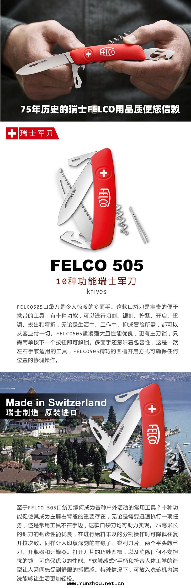 瑞士刀(dāo)FELCO,10个功能(néng),包(bāo)括開(kāi)瓶器和(hé)鋸
