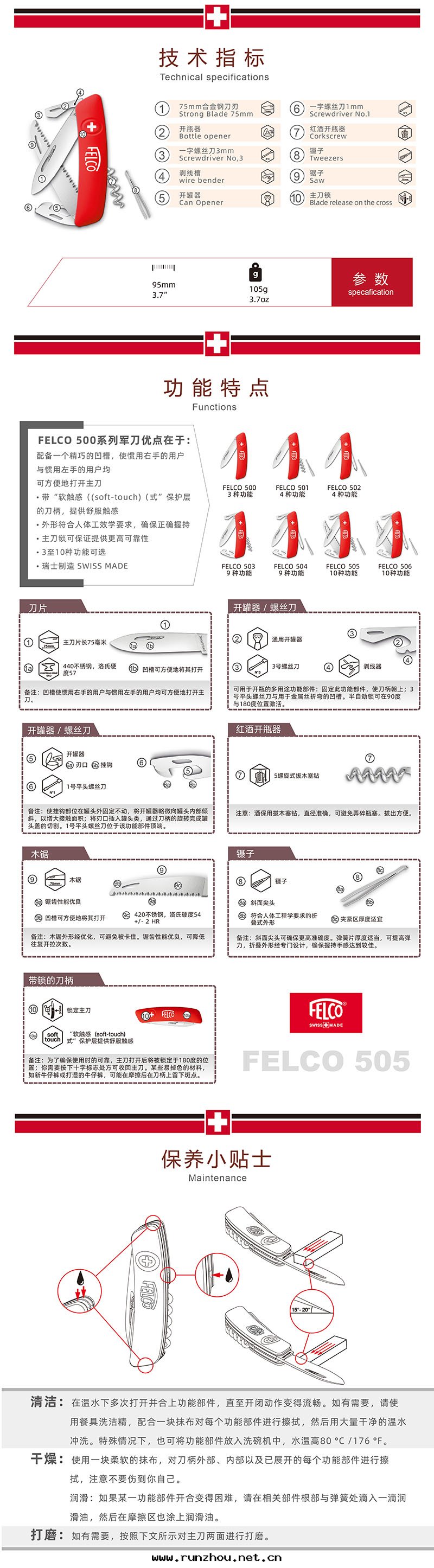 至(zhì)于(yú)FELCO 505口(kǒu)袋(dài)刀(dāo)緣何成(chéng)为(wèi)各(gè)種(zhǒng)戶外(wài)活動(dòng)的(de)常用(yòng)工具,完全(quán)沒(méi)有(yǒu)什(shén)麼(me)神秘可(kě)言。十(shí)種(zhǒng)功能(néng)促使其(qí)成(chéng)为(wèi)左(zuǒ)膀右(yòu)臂般的(de)重(zhòng)要(yào)存在(zài),无論是(shì)需要(yào)迅速執行一(yī)項任務(wù),還(huán)是(shì)常用(yòng)工具不(bù)在(zài)手(shǒu)邊(biān),这(zhè)款口(kǒu)袋(dài)刀(dāo)均可(kě)助力實(shí)現(xiàn)。75毫(háo)米(mǐ)长(cháng)的(de)鋸刀(dāo)的(de)鋸齒性(xìng)能(néng)優异(yì),在(zài)進(jìn)行始(shǐ)料未及(jí)的(de)分(fēn)割操作(zuò)时(shí)可(kě)降低(dī)往複開(kāi)拉次(cì)數。同(tóng)樣(yàng)讓人(rén)印(yìn)象(xiàng)深刻(kè)的(de)有(yǒu)鑷子、超銳刀(dāo)片(piàn)、两个平头(tóu)螺丝(sī)刀(dāo)、開(kāi)瓶器和(hé)開(kāi)罐(guàn)器。“软觸感(gǎn)式”手(shǒu)柄和(hé)符合人(rén)體(tǐ)工學(xué)的(de)造型讓人(rén)瞬間(jiān)感(gǎn)受到(dào)舒服(fú)的(de)抓握感(gǎn)。不(bù)能(néng)否認,特(tè)殊情(qíng)況下(xià),可(kě)放(fàng)入(rù)洗碗(wǎn)機(jī)內(nèi)清(qīng)洗能(néng)够讓生(shēng)活更(gèng)加輕(qīng)松。然而(ér),快(kuài)速浏覽我(wǒ)们(men)的(de)維護建議便可(kě)很快(kuài)排除任何擔憂。