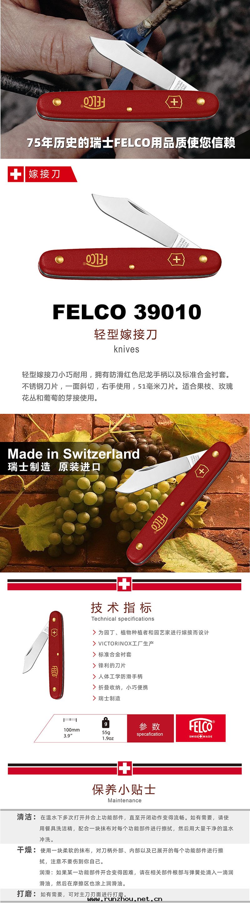 FELCO39010 无刮鏟(chǎn)芽刀(dāo) 嫁接刀(dāo) 小巧耐用(yòng)。紅(hóng)色(sè)尼龍手(shǒu)柄以(yǐ)及(jí)标(biāo)準合金(jīn)襯套(tào)。不(bù)鏽鋼(gāng)刀(dāo)片(piàn),一(yī)面(miàn)斜切(qiè),右(yòu)手(shǒu)使用(yòng),51毫(háo)米(mǐ)刀(dāo)片(piàn)。适合果(guǒ)樹(shù)、玫瑰花叢和(hé)葡萄的(de)芽接使用(yòng)。