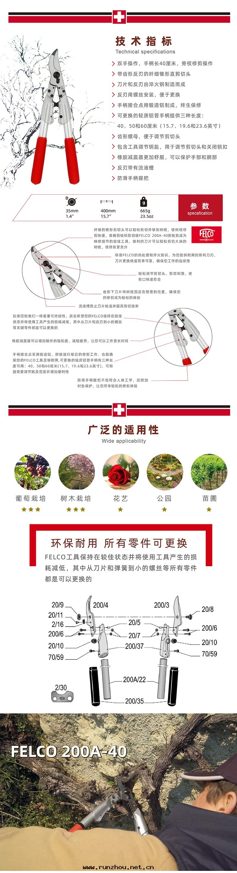 FELCO工具不(bù)以大(dà)小論英雄。这(zhè)款剪枝剪小巧、輕(qīng)便、易于(yú)攜带(dài),力量(liàng)大(dà)而(ér)不(bù)失FELCO品牌(pái)的一貫準确,这(zhè)里(lǐ)通(tòng)过(guò)可(kě)互換的手(shǒu)柄進(jìn)一步增強(qiáng)了(le)功能(néng)。FELCO 200A-40剪枝剪可(kě)以輕(qīng)松快(kuài)速地(dì)剪切(qiè)35毫(háo)米(mǐ)/1.18英寸(cùn)的树枝,因(yīn)此(cǐ)您不(bù)必考慮其(qí)尺(chǐ)寸(cùn)。 力量(liàng)和(hé)準确是(shì)这(zhè)款輕(qīng)便耐用(yòng)的FELCO 200A-40剪枝剪的突出(chū)品質(zhì)。一旦決定(dìng)要(yào)剪切(qiè),效果(guǒ)是(shì)毋庸置疑的,特(tè)别是(shì)緊握的齒形反(fǎn)刃将树枝牢牢夾進(jìn)剪切(qiè)头(tóu)。在(zài)不(bù)方(fāng)便的枝枝杈杈之(zhī)间修剪时(shí),可(kě)調的直锥形剪切(qiè)头(tóu)可(kě)以實(shí)現(xiàn)必要(yào)的準确剪切(qiè)。可(kě)更(gèng)換的手(shǒu)柄進(jìn)一步增強(qiáng)了(le)FELCO 200A-40剪枝剪的獨特(tè)功能(néng)。快(kuài)速切(qiè)換三種(zhǒng)可(kě)用(yòng)管(guǎn)长(cháng),长(cháng)度(dù)可(kě)达(dá)60厘(lí)米(mǐ)/23.6英寸(cùn),可(kě)将工具的觸及(jí)範圍和(hé)杠杆作(zuò)用(yòng)保持(chí)在(zài)控制艱巨的修剪工作(zuò)狀态。橡胶(jiāo)減震器可(kě)以在(zài)您剪切(qiè)較大(dà)树枝时(shí)为(wèi)手(shǒu)腕提(tí)供缓沖保護,因(yīn)此(cǐ)用(yòng)起(qǐ)来(lái)很舒服(fú)。