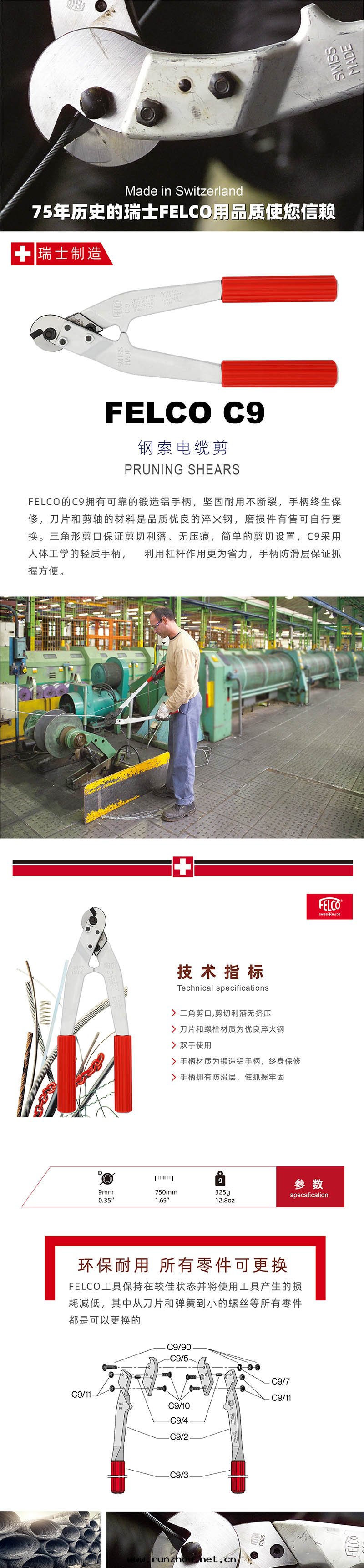 FELCO C9- 鋼(gāng)丝剪 可(kě)靠性(xìng):鍛造鋁(lǚ)手(shǒu)柄堅固耐用(yòng)不(bù)斷裂,終(zhōng)生(shēng)保修 / 刀(dāo)片(piàn)和(hé)剪軸的材料是(shì)淬火(huǒ)鋼(gāng) / 磨損件(jiàn)可(kě)更(gèng)換。 效能(néng):三角(jiǎo)形剪口保證剪切(qiè)利落(là)、無压痕 / 簡單而(ér)持(chí)久的剪切(qiè)設置 人(rén)體(tǐ)工學(xué):輕(qīng)質(zhì)手(shǒu)柄 / 杠杆作(zuò)用(yòng) / 防滑层(céng)保證抓握方(fāng)便