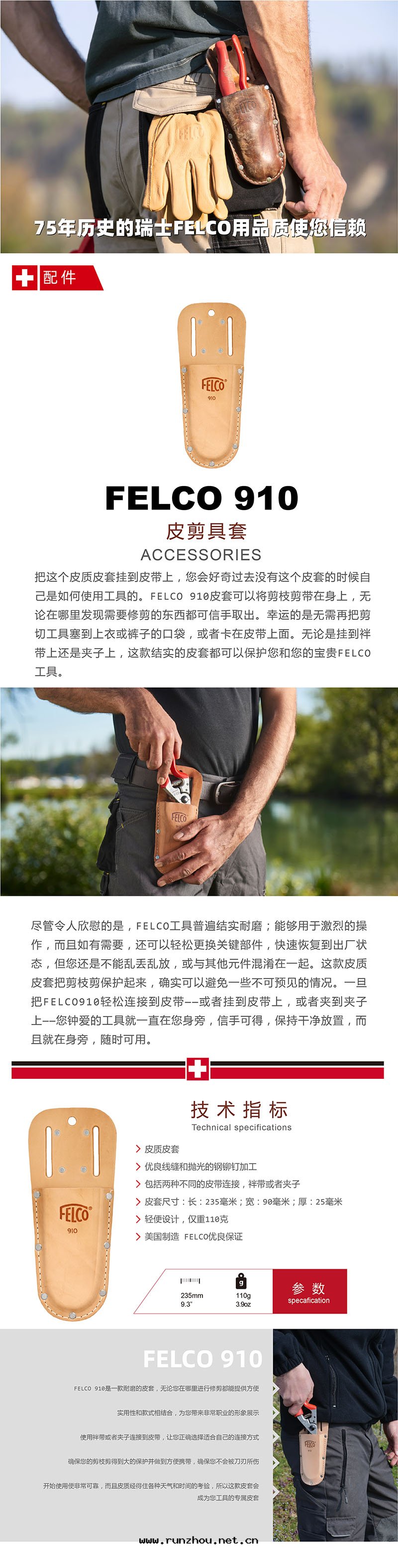 盡管(guǎn)令人(rén)欣慰的是(shì),FELCO工具普遍(biàn)結實(shí)耐磨;能(néng)夠用(yòng)于(yú)激烈的操作(zuò),而(ér)且(qiě)如(rú)有(yǒu)需要(yào),还可(kě)以輕(qīng)松更(gèng)換關(guān)鍵部(bù)件(jiàn),快(kuài)速恢複到(dào)較佳狀态,但您还是(shì)不(bù)能(néng)亂丢亂放(fàng),或與(yǔ)其(qí)他(tā)元(yuán)件(jiàn)混淆在(zài)一起(qǐ)。 这(zhè)款皮(pí)套(tào)把(bǎ)剪枝剪安(ān)心(xīn)保護起(qǐ)来(lái),确實(shí)可(kě)以避免一些(xiē)不(bù)可(kě)預見(jiàn)的情(qíng)況。一旦把(bǎ)FELCO 910輕(qīng)松連(lián)接到(dào)皮(pí)带(dài)——或者(zhě)挂到(dào)袢带(dài)上(shàng),或者(zhě)夾到(dào)夾子上(shàng)——您鐘(zhōng)爱(ài)的工具就(jiù)一直在(zài)您身(shēn)旁……对(duì),信(xìn)手(shǒu)可(kě)得,保持(chí)干(gàn)净放(fàng)置,而(ér)且(qiě)就(jiù)在(zài)身(shēn)旁,随时(shí)可(kě)用(yòng)。
